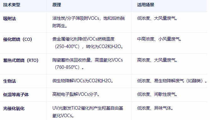 吸附濃縮+燃燒:活性炭吸附低濃度廢氣,脫附后高濃度氣體進入RTO/CO,適用于大風量低濃度場景。